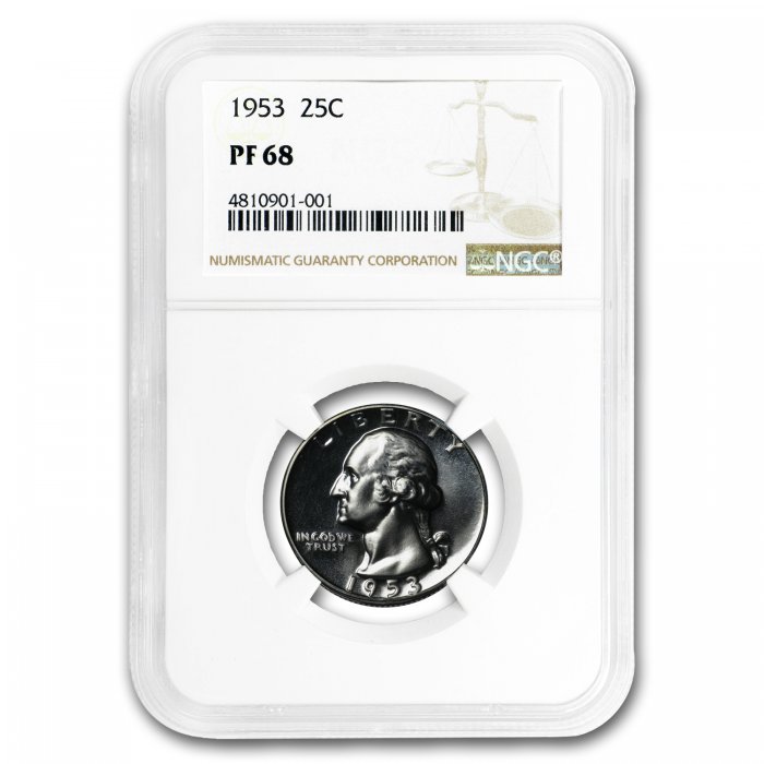This 1953 Washington Quarter has been certified as PF-68 by NGC, one of the top two coin grading services. This highly collectible coin is a great addition to any numismatic collection!