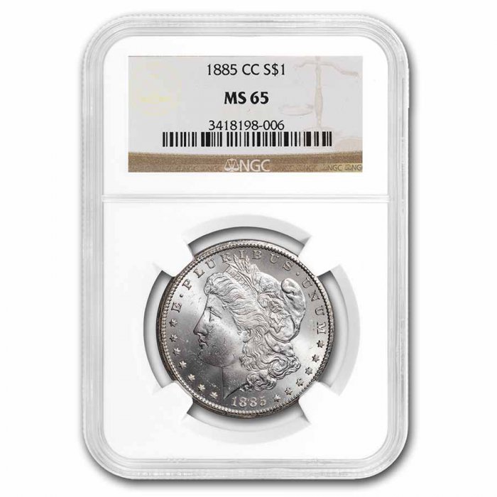 This 1885-CC Morgan Dollar has been certified as MS-65 by NGC, one of the top two coin grading services. This coin has a population of only 3,578 coins!