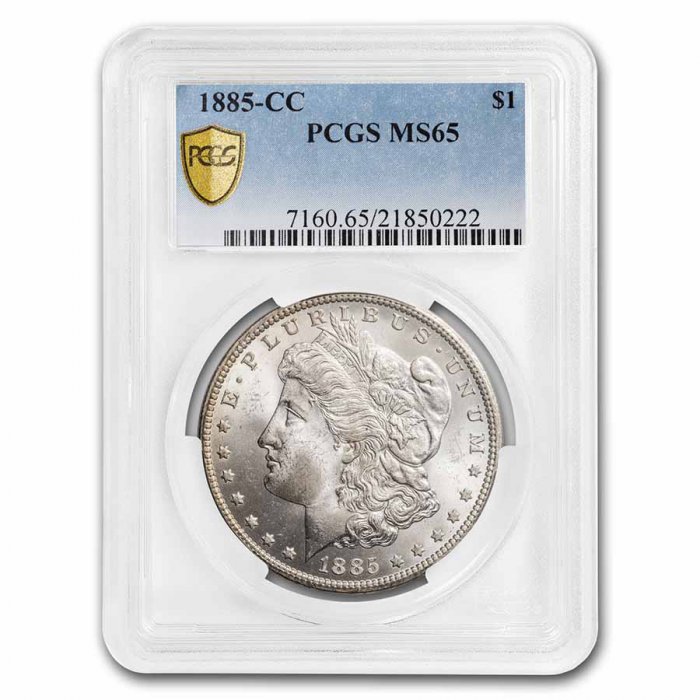 This 1885-CC Morgan Dollar has been certified as MS-65 by PCGS, one of the top two coin grading services. This highly collectible coin is a great addition to any numismatic collection!