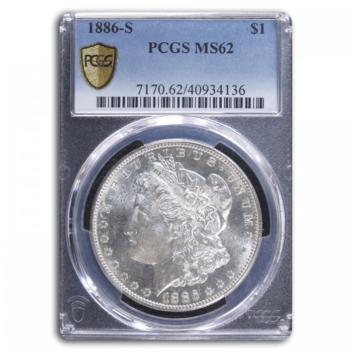 This 1886-S Morgan Dollar has been certified as MS-62 by PCGS, one of the top two coin grading services. This highly collectible coin is a great addition to any numismatic collection!