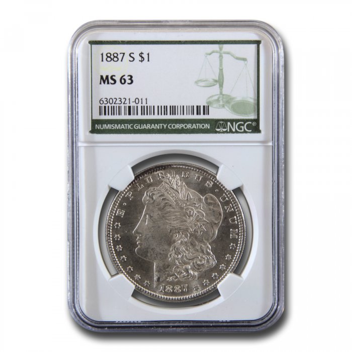 This 1887-S Morgan Dollar has been certified as MS-63 by NGC, one of the top two coin grading services. This highly collectible coin is a great addition to any numismatic collection!
