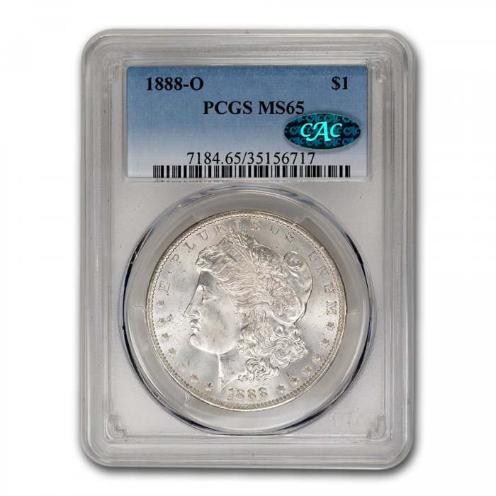 This 1888-O Morgan Dollar has been certified as MS-65 by PCGS, one of the top two coin grading services. This highly collectible coin is a great addition to any numismatic collection.