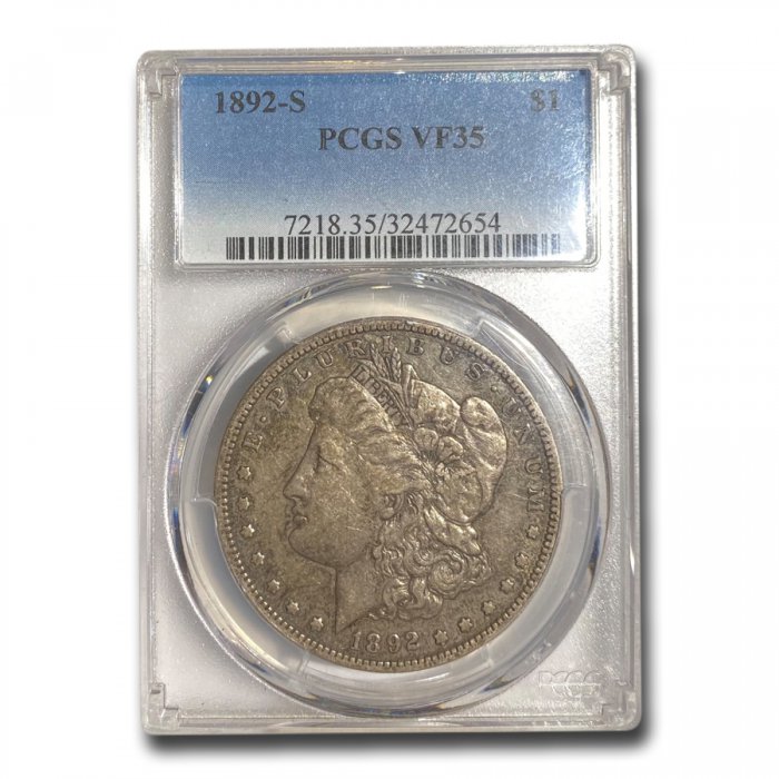 The Morgan Silver Dollar is the most popular Silver Dollar collected in the world for its timeless design of Liberty. This 1892-S Morgan Dollar has been guaranteed an VF-35 by PCGS, one of the top two coin grading services.