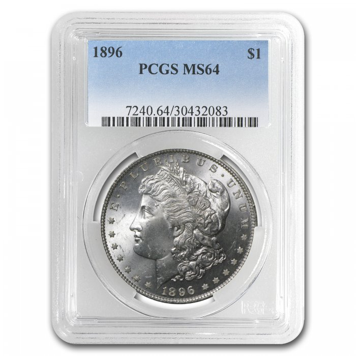 The Morgan Silver Dollar is the most popular Silver dollar in the world for its classic design of Liberty. This 1896 Morgan Dollar has been guaranteed by PCGS as being an MS-64.
