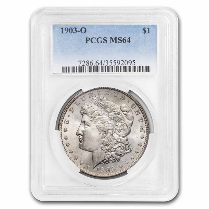 This 1903-O Morgan Dollar has been certified as MS-64 by PCGS, one of the top two coin grading services. This highly collectible coin is a great addition to any numismatic collection!