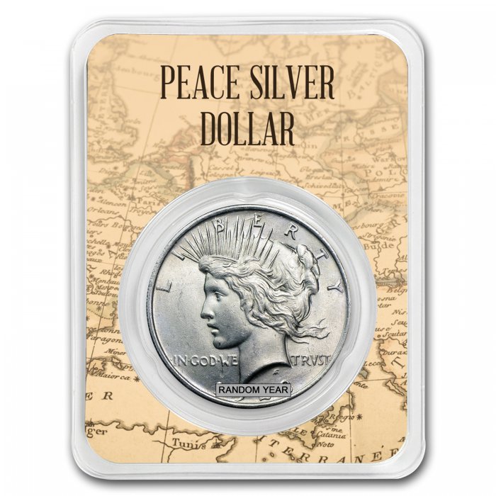 Peace Silver Dollars, one of the most recognized designs in American coinage, were originally issued to commemorate peace in the world after the end of WWI. This Peace Silver Dollar is presented in special tamper evident packaging.