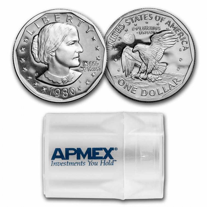 This is a great way to begin a collection of America's first small-sized dollar coin! Add this 1980-S Proof Susan B. Anthony Dollar coin roll to your cart today!
