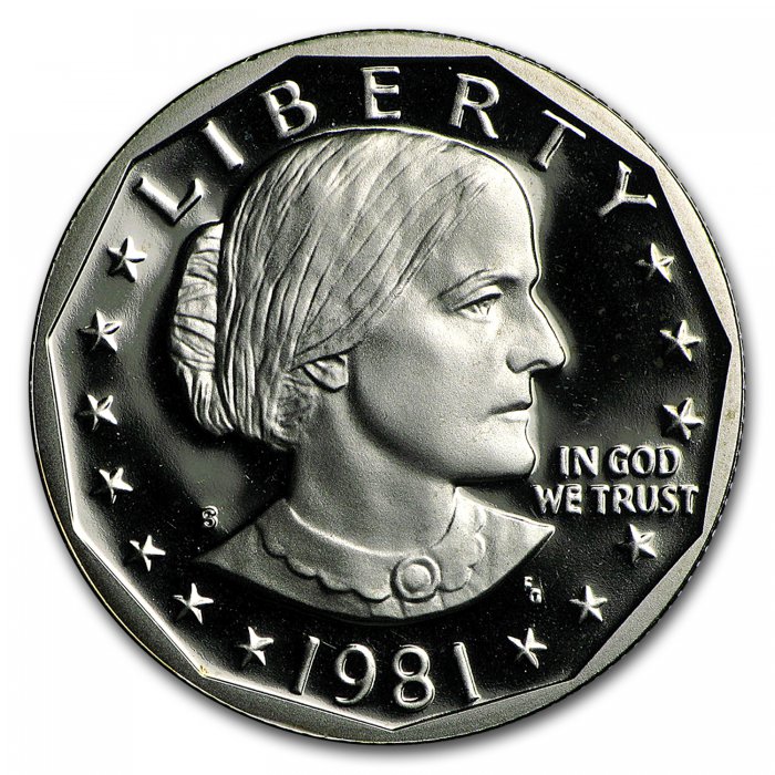 This is a great way to begin a collection of America's first small-sized dollar coin! Add this 1981-S Proof Susan B. Anthony Dollar coin to your cart today!