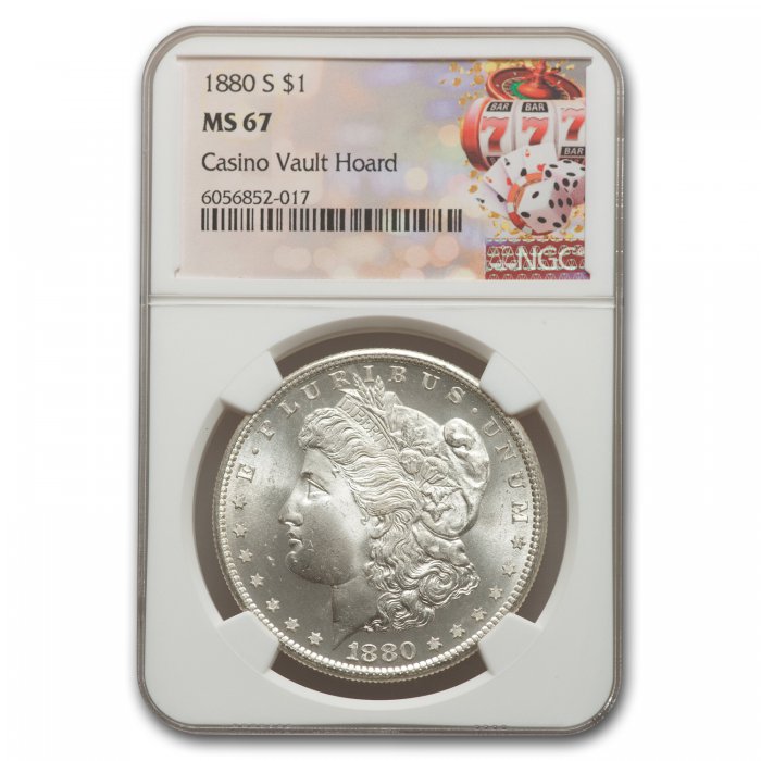 This 1880-S Morgan Dollar has been certified as MS-67 by NGC, one of the top two coin grading services. This highly collectible coin is a great addition to any numismatic collection!