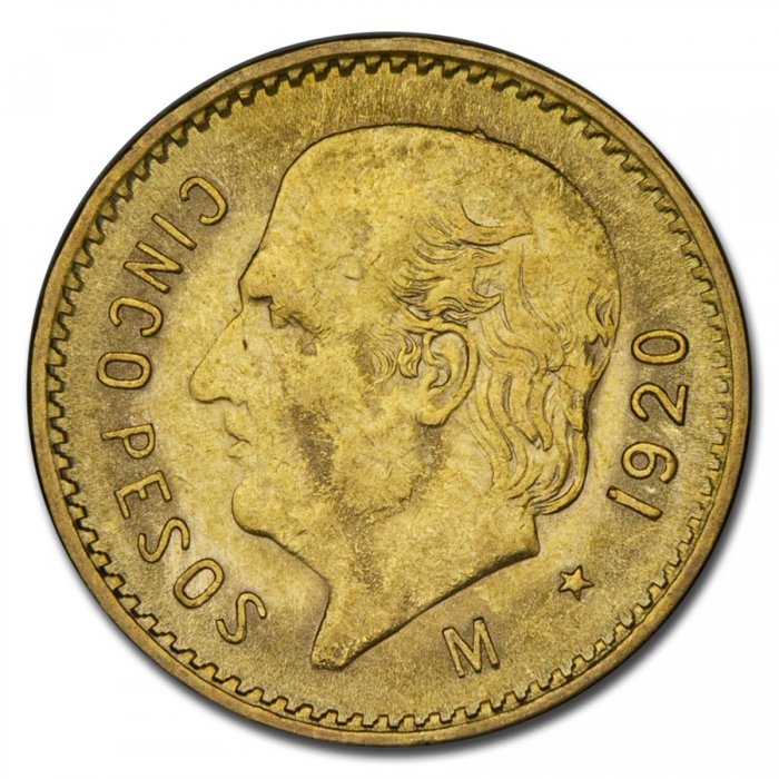 / Buy 1920 Mexico Gold 5 Pesos BU