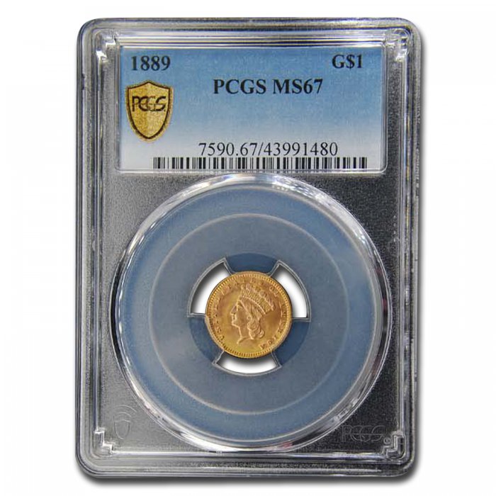 This 1889 $1.00 Indian Head Gold Type 3 has been graded MS-67 by PCGS, one of the top two coin grading services, and has a population of only 261.