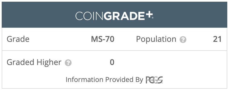 PCGS encapsulation guarantees the coin's perfect MS-70 condition.