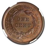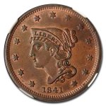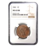 This 1841 Large Cent has been certified as MS-63 (Red/Brown) by NGC, one of the top two coin grading services. This coin has a population of only 3 coins!