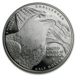 - Reverse: Shows an image of the bald eagle Challenger with an American flag in the background.
