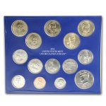 The 2014 United States Mint Set contains two folders of 14 coins each for a total of 28 Brilliant Uncirculated coins. The folders feature the new mint logo on a Stars & Stripes cover.