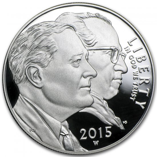 Obverse: The design represents the past depicting President Franklin D. Roosevelt and Dr. Jonas Salk, two leaders in the fight against polio.