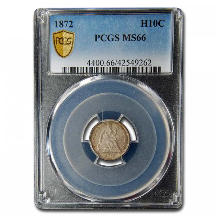 This 1872 Liberty Seated Half Dime has been certified as MS-66 by PCGS, one of the top two coin grading services.
