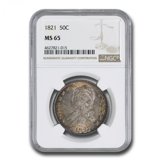 This 1821 Capped Bust Half Dollar has been certified as MS-65 by NGC, one of the top two coin grading services. This coin has a population of only 12 coins!