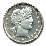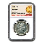 Only $3,059.00 per coin This 1892 Barber Half Dollar has been certified as MS-63 (PL) by NGC, one of the top two coin grading services. This coin has a population of only 1 coin!