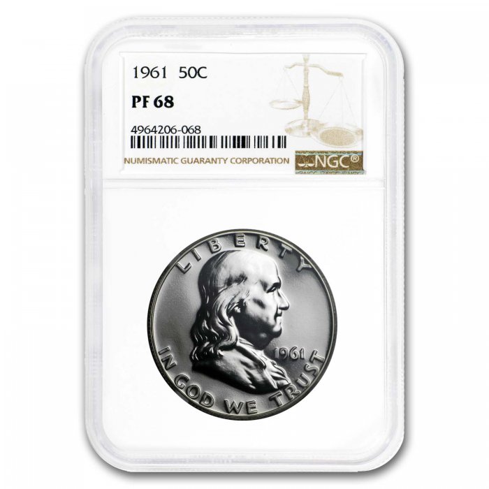 Only $89.99 per coin This 1961 Franklin Half Dollar has been certified as PF-68 by NGC, one of the top two coin grading services. This highly collectible coin is a great addition to any numismatic collection!
