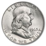 Obverse: Depicts a profile of Ben Franklin facing right. "LIBERTY" is above Franklin