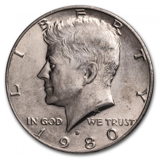 Add the Brilliant Uncirculated 1980-D Kennedy Half Dollar to your cart today!