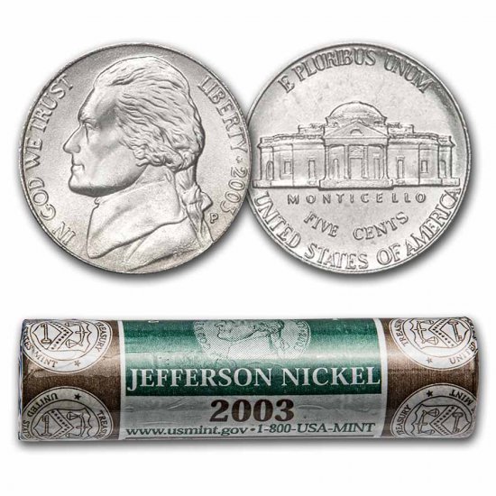 Buy 2003-P Jefferson Nickel 40-Coin Roll BU (Mint Wrapped)