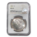 The Morgan Silver Dollar is the most popular Silver dollar collected in the world. This 1903 Morgan Dollar has been graded as being in MS-64 condition by NGC.